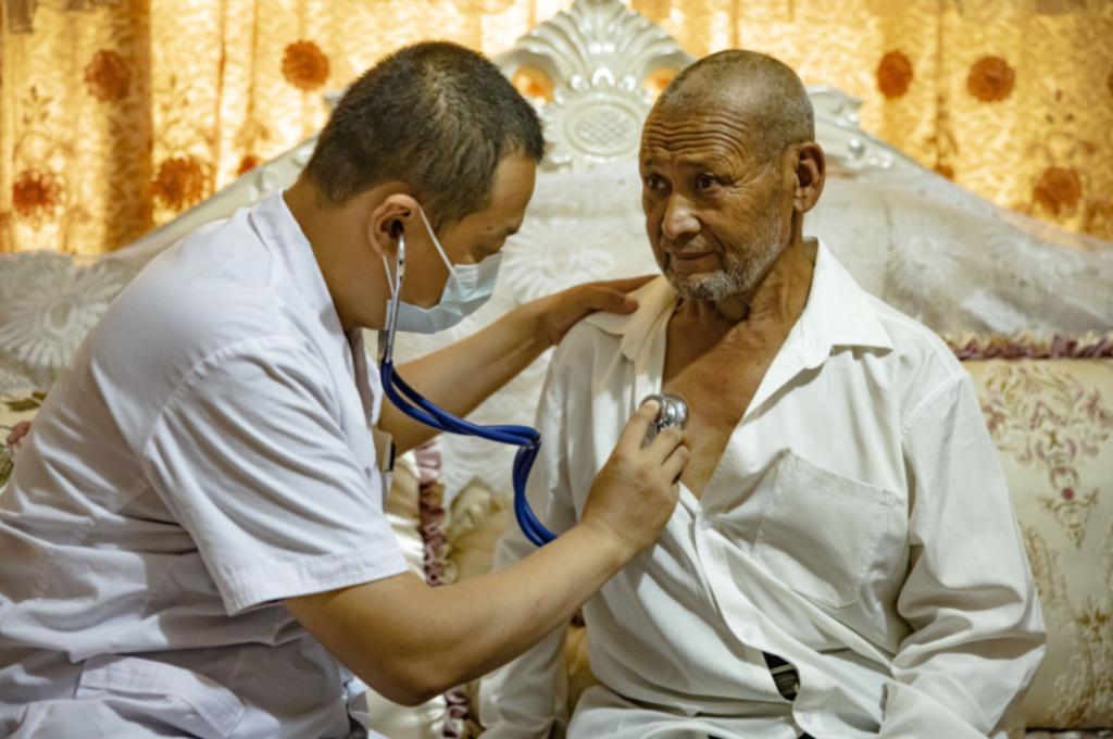 专家为巴克尔·阿卜杜喀迪尔检查心脏