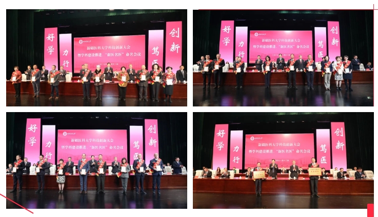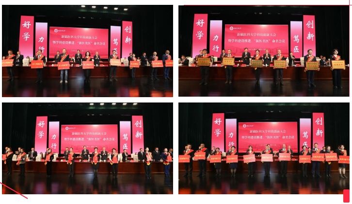 会议对beat365中文官方网站2022-2023年重大科研项目和成果获得者、2022年度科研管理先进集体和先进工作者、2023年度校级科研平台立项单位和学科建设进位先进团队进行了表彰,并向首批第二轮“新医名医”颁发了证书。