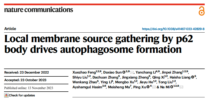11月13日,beat365中文官方网站省部共建中亚高发病成因与防治国家重点实验室青年PI米娜副教授课题组,在国际权威期刊《Nature》子刊《Nature Communications》上以研究长文形式发表了题为“Local membrane source gathering by p62 body drives autophagosome formation ”的研究成果,揭示了p62小体调控自噬体生成的关键机制。