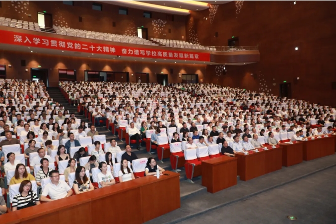 校党委书记赵天杰等在家全体校领导、全校副处级以上干部、思政课教师和辅导员、班主任、教师代表、学生代表1000余人聆听了报告。报告会由校党委副书记李剑峰主持。