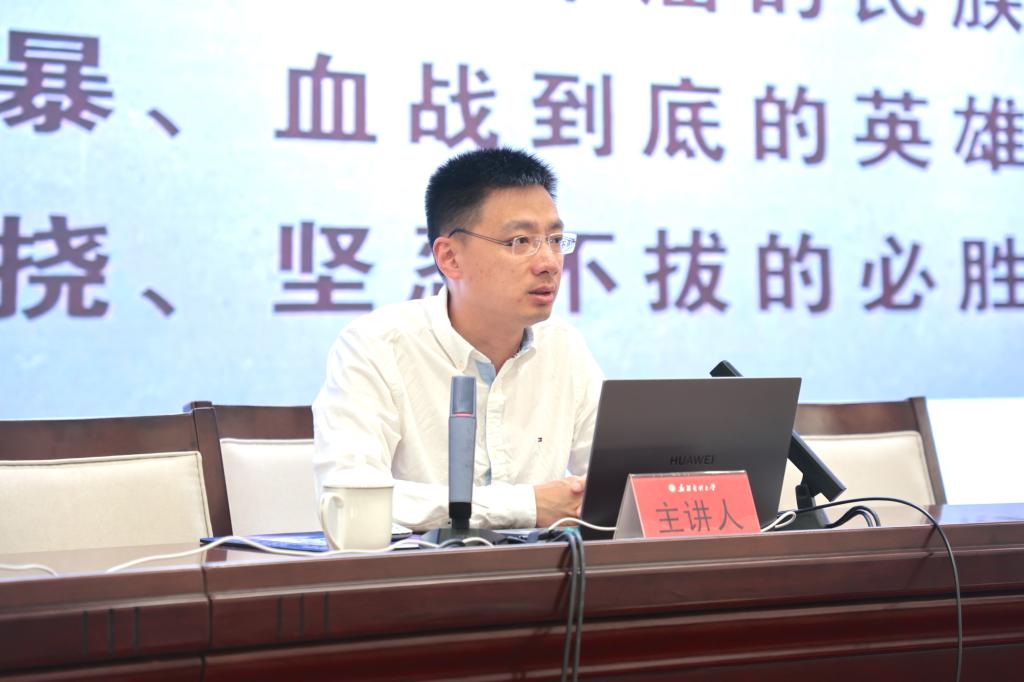 讲座现场,黎立主任与大家一起分享了现场观看九三阅兵深刻感受,使大家体悟到大国重器与平凡岗位的同频共振;接着又以专业的视角再现小男孩断臂重生的惊心时刻,诠释了医者仁心、大爱无疆的深刻内涵。讲座中,他勉励同学们刻苦学习、苦练医学本领,使个人理想与时代需求同向同行。黎立主任用质朴的语言、生动的案例向在座师生娓娓道来,展现出九三阅兵背后人民的力量和守护人民健康背后医者的力量。通过此次讲座,在场师生深刻懂得:中华民族伟大复兴的壮丽史诗,既需要阅兵场上整齐划一的集体宣言,更需要每个岗位上默默耕耘的“平凡英雄”。