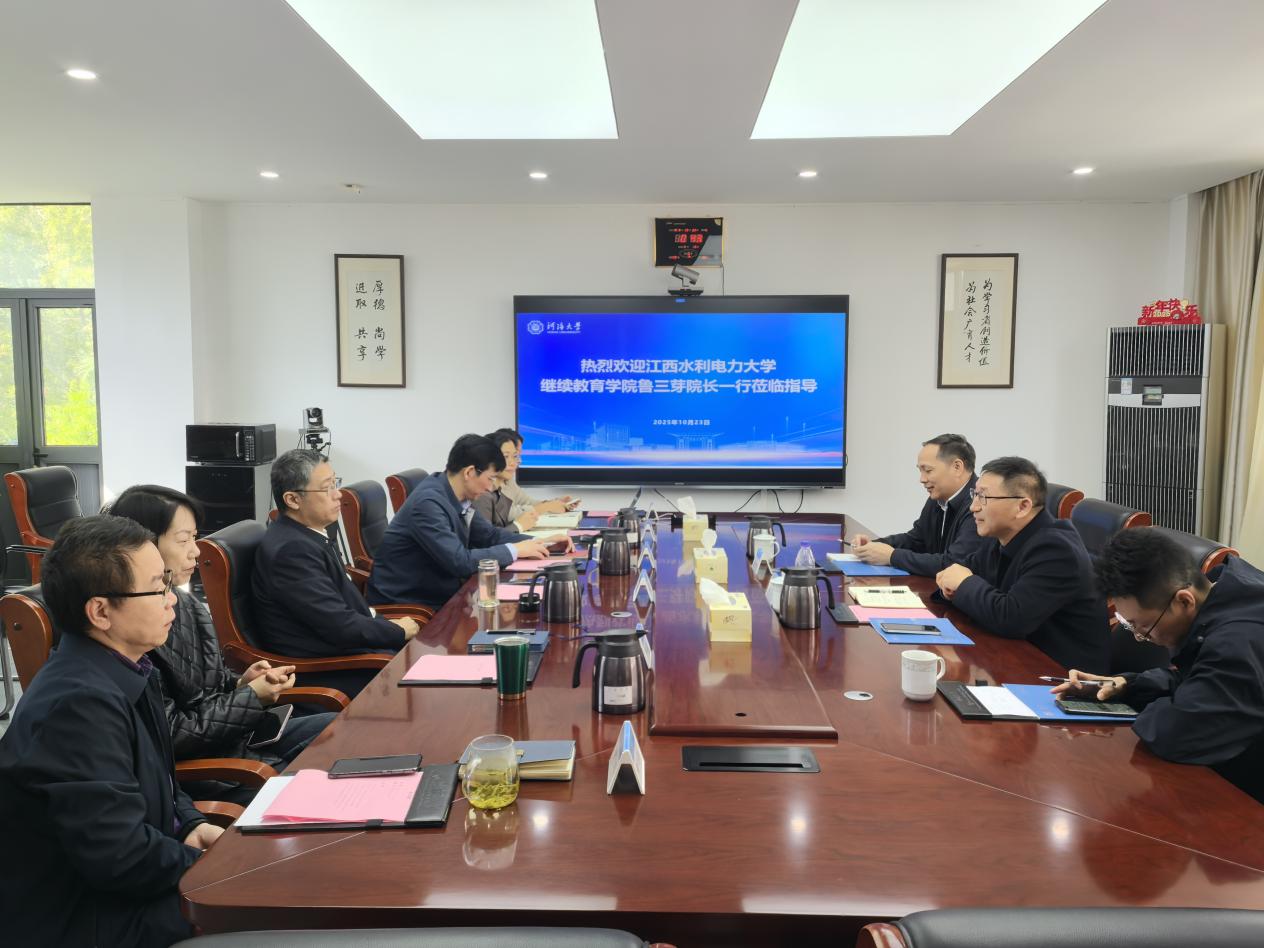 2025年10月23日上午,江西水利电力大学继续教育学院院长鲁三芽一行莅临mg4355官网进行交流座谈。mg4355电子官网主页党总支书记、院长朱亚,副院长于伟、姚文贤以及双方相关部门负责人参加座谈会